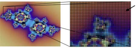 As you can see, transformations do not introduce new "shapes" into or add more details to the fractal: They only can distort the fractal or parts of the fractal in an arbitrary manner. In order to fully understand the use of transformation formulas you need to know some basics of fractal iteration: Let's describe fractal type Escapetime: A fractal gets drawn into a window, which is a rectangular area. For fractal type "Escapetime" each "screen-"pixel in that window corresponds to a specific complex number, so that the window basically is a small rectangular area cut out from the complex number plane. In order to calculate the fractal the complex number corresponding to a pixel gets passed to the calculation routine, which finally returns a color for that pixel.