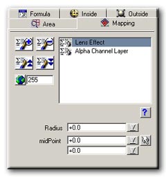 to a solid color and a fixed opacity value. You can adjust these parameters by selecting the solid color If you select a transformation you can see that the lower part of the window will change: It contains the parameters of the transformation as defined by the author of that formula. To read more about formula parameters and the user interface provided to them read User Interface. |
