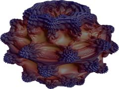 Too easy? Wait a moment: ChaosPro restricts you not only to simple zoom in/out/around movies, it lets you create animations based upon every fractal parameter in ChaosPro, in every combination. You simply define key frames of how your animation should look like, specify how many frames there should be between each pair of key frames and ChaosPro does the rest. The key frames may differ in any parameter which can be changed in a continuously manner, like the corners, the iteration value, the rotation angle, the parameter, the bailout value, the coloring paramaters, the palette and many others. Parameters which cannot change during an animation are the fractal type or flags for example: These must be the same during the animation. But the animation system is clever enough to not let you specify keyframes which do not match to the others you already have defined. So, are you interested in an animation flying into a Complex Newton Set, which keeps rotating, whereas the palette changes, just in order to fly around a bit and finally to fly back to the starting location animating the initialization point? And together with the 3D feature you additionally can animate all 3D parameters... |